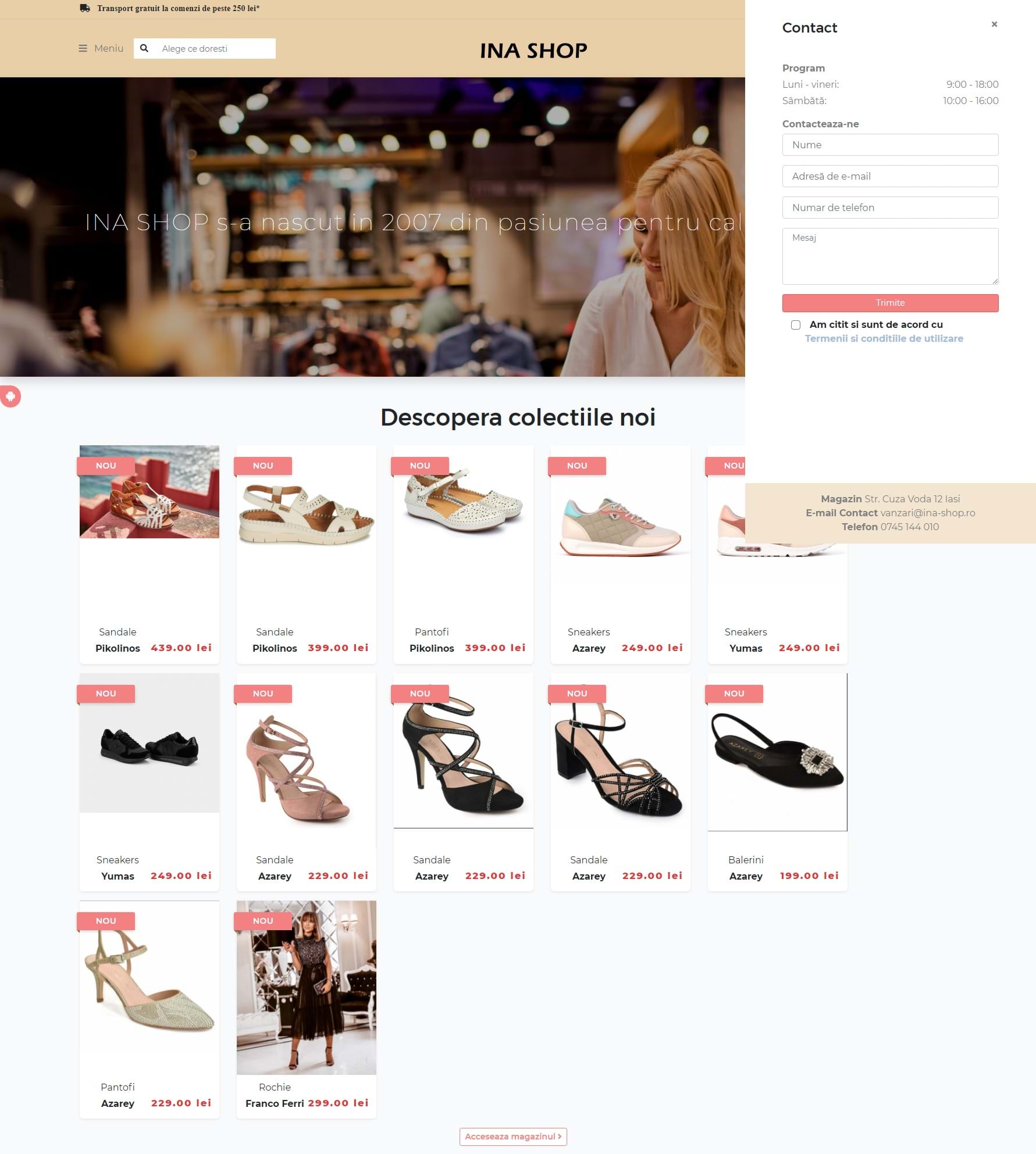Ina Shop este un magazin online dedicat comercializării de îmbrăcăminte și încălțăminte, oferind o gamă variată de produse pentru diverse gusturi și preferințe. Platforma pune accent pe calitate, diversitate și accesibilitate, facilitând o experiență de cumpărare plăcută și eficientă pentru clienți.