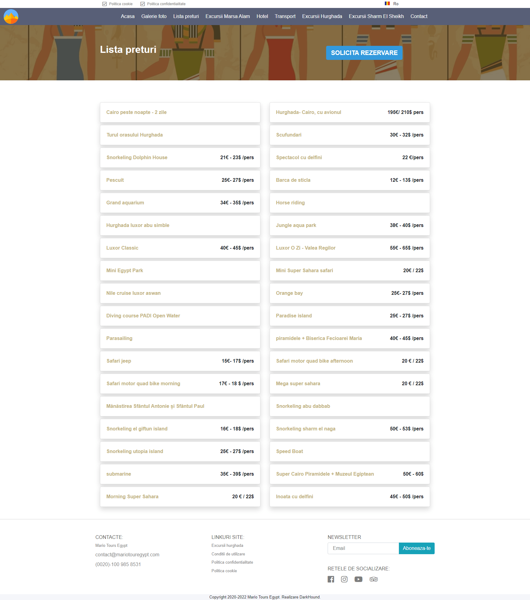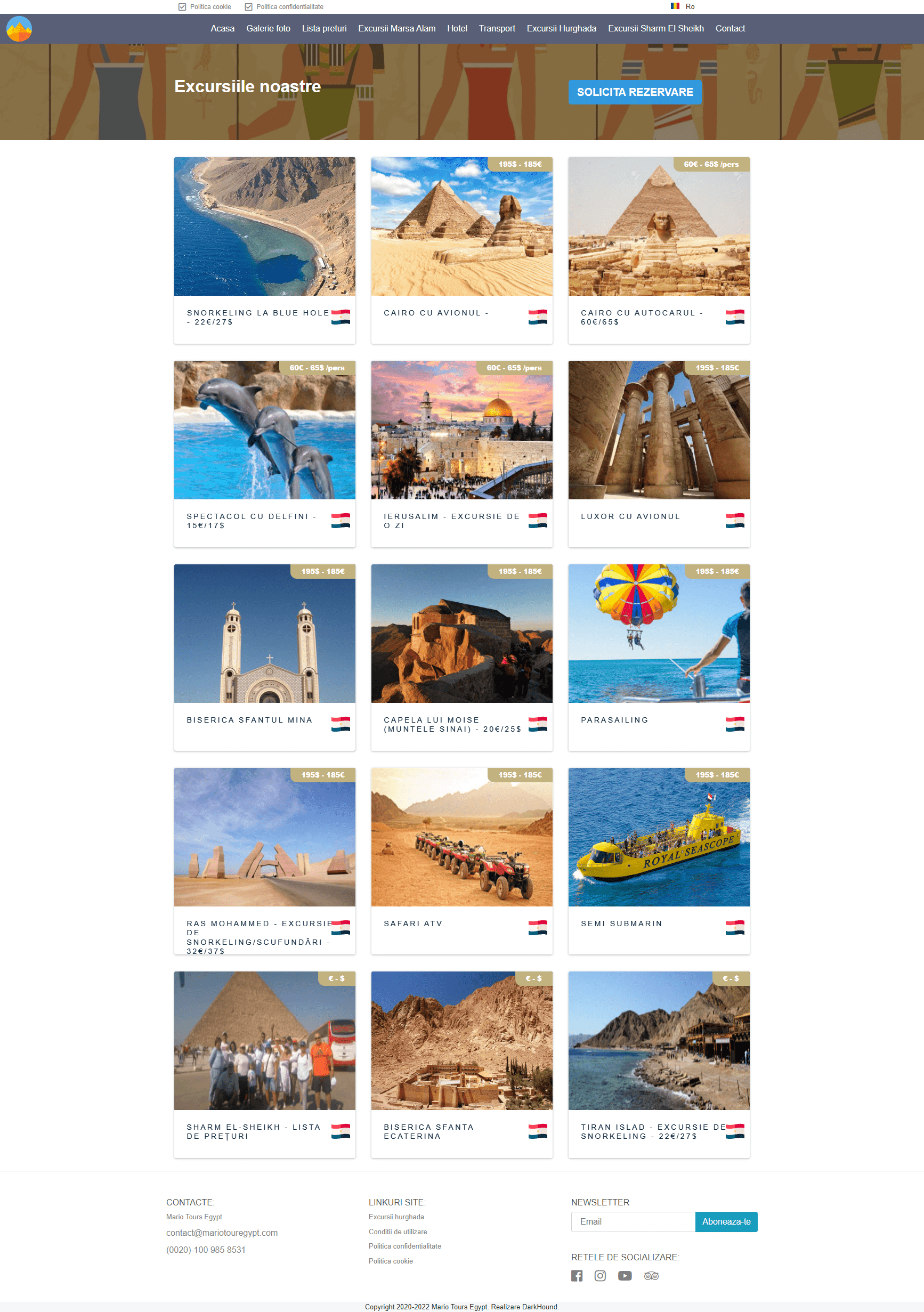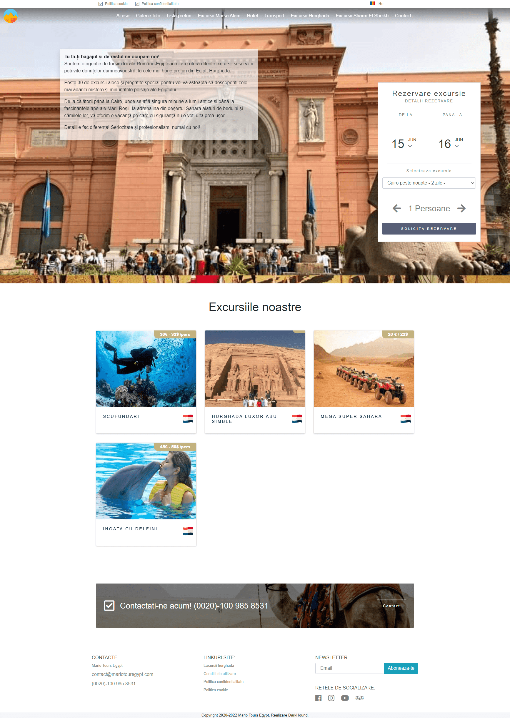 Pentru a le oferi turiștilor români – și nu numai – o experiență de rezervare sigură, rapidă și intuitivă, Mario Tour Egypt utilizează o platformă digitală modulară, complet adaptabilă, ideală și pentru sectorul turismului. Aceasta servește ca punct central pentru prezentarea pachetelor de excursii, comunicarea detaliilor logistice și gestionarea rezervărilor direct de către echipa locală din Egipt.